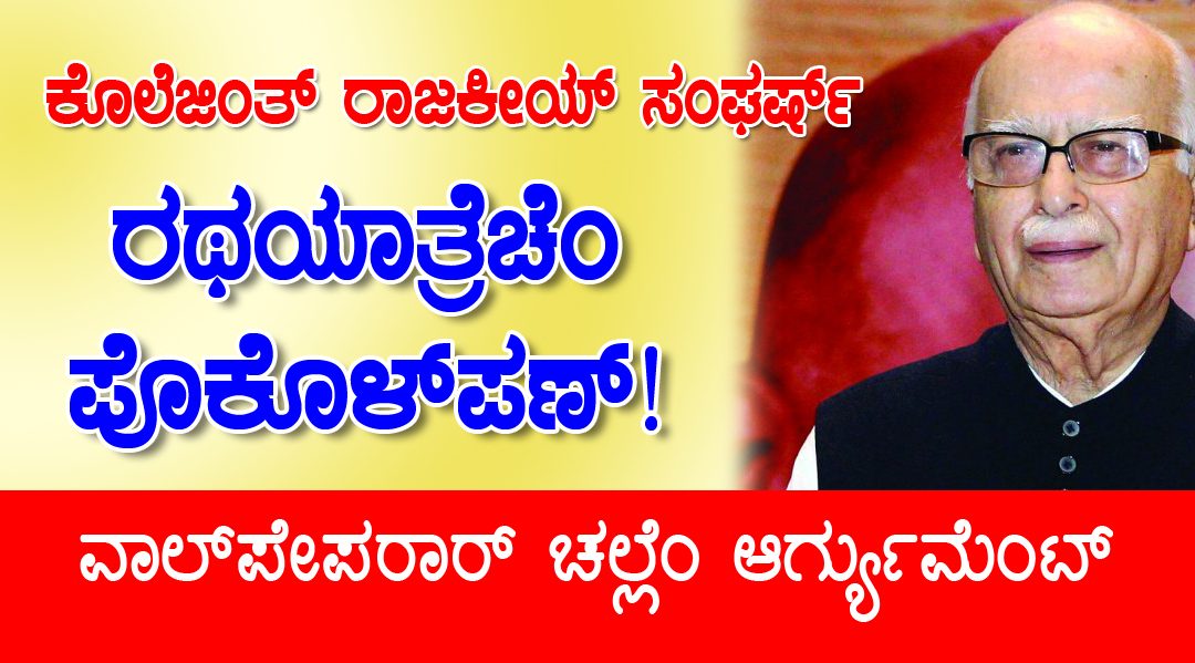 ಗುಜರಾತಾಚ್ಯಾ ಸೋಮನಾಥ್ ಥಾವ್ನ್ ಸಪ್ತೆಂಬರ್ 25, 1990ವೆರ್ ರಥಯಾತ್ರೆಚಿ ಸುರ್ವಾತ್ ಜಾಲಿ. ಧಾರ್ಮಿಕ್ ಸಿಂತಿಮೆಂತಾಂ ಉಚಾಂಬಳ್ ಕರ್ನ್ ಲೊಕಾಚೆಂ ಗುಮಾನ್ ವೊಡುನ್ ಮನ್ (ಮತ್) ಜಿಕ್ಚೆಂ ಬಿ.ಜೆ.ಪಿ.ಚೊ ಶೆವಟ್ ಜಾವ್ನಾಸ್ಲ್ಲೊ. ರಥಯಾತ್ರೆ ಜಾಯ್ತ್ಯಾ ರಾಜ್ಯಾಂ ಮುಖಾಂತ್ರ್ ವಚೊಂಕ್ ಮಾಂಡಾವಳ್ ಘಾಲ್ಲಿ. ದೇಶ್ಭರ್ ಪ್ರಚಾರ್, ಚರ್ಚಾ ಜಾತಾಲಿ. ದಕ್ಷಿಣ ಕನ್ನಡಾಂತ್ ಬಿ.ಜೆ.ಪಿ.ಕ್ ಆದಿಂ ಥಾವ್ನ್ ಬರೊಚ್ ಪಾಟಿಂಬೊ ಮೆಳ್ಳಾ. ಹಾಂಗಾಯೀ ರಥಯಾತ್ರೆ ವಿಶಿಂ ಭಾರಿಚ್ ಚರ್ಚಾ ಜಾತಾಲಿ.